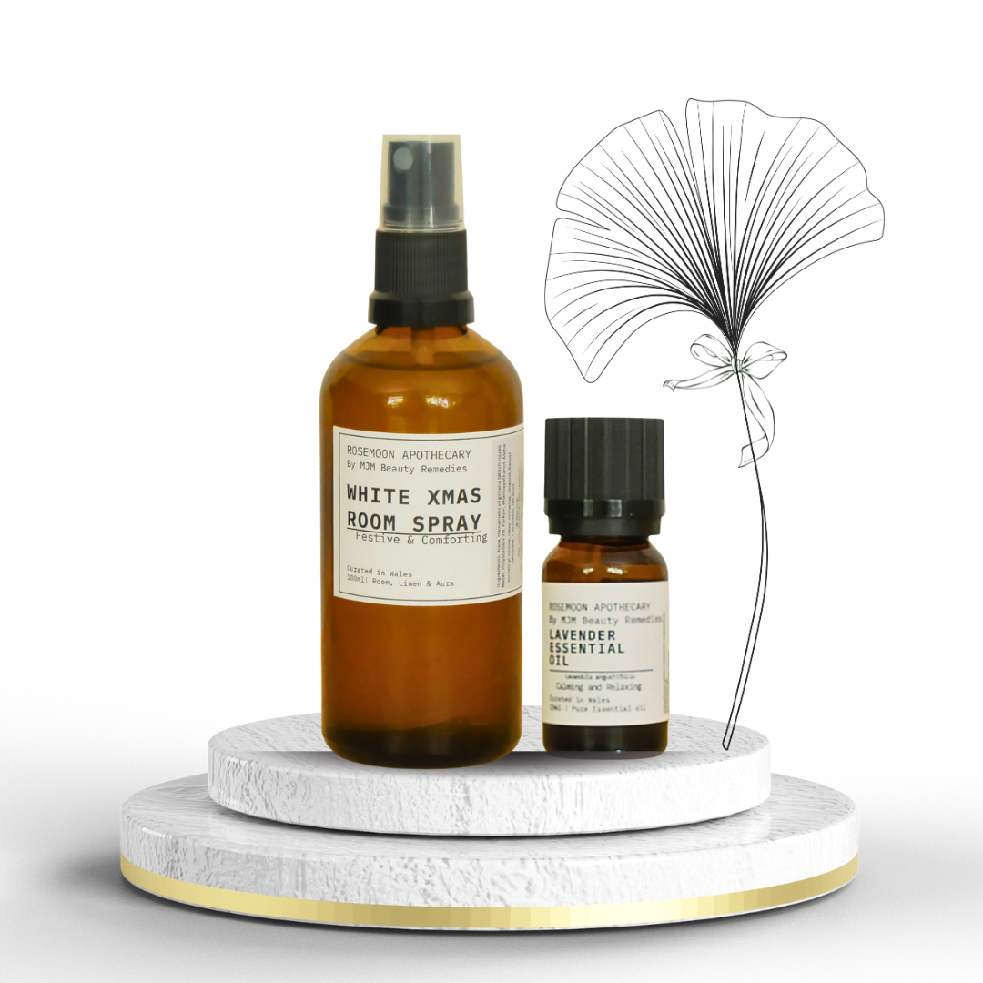 This elegant gift box includes a luxurious Room & Linen Spray and a pure Essential Oil, both curated in Wales by Rosemoon Apothecary.
